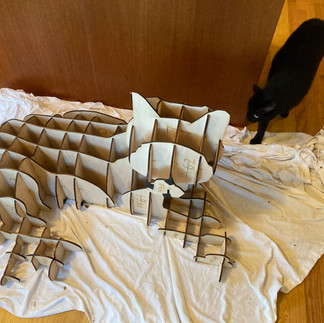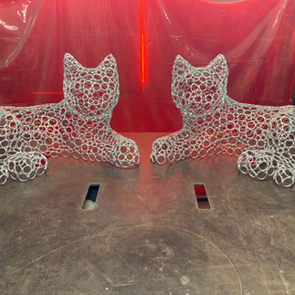 The TomCat and Mini Luna Demure Le Purr sculptures are ready for welding! I trimmed the wires this time around. Took extra time and blood but I'm hoping it will make welding easier.