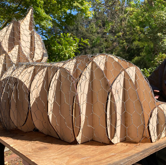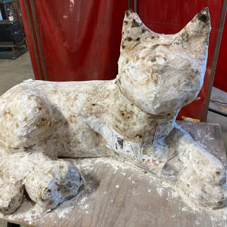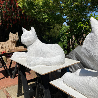 The two commissioned Demure Le Purr sculptures are welded, off the forms and free of wires. Mini Vega is ready to weld.