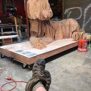 Bama (3D modeler and CAD designer of the Purr Pods) and Llano. We knocked it out in about 3 hours. I got it covered in chicken wire and started with the drywall papier-mâché process on Sunday with Rolf and Will's help. Yay!